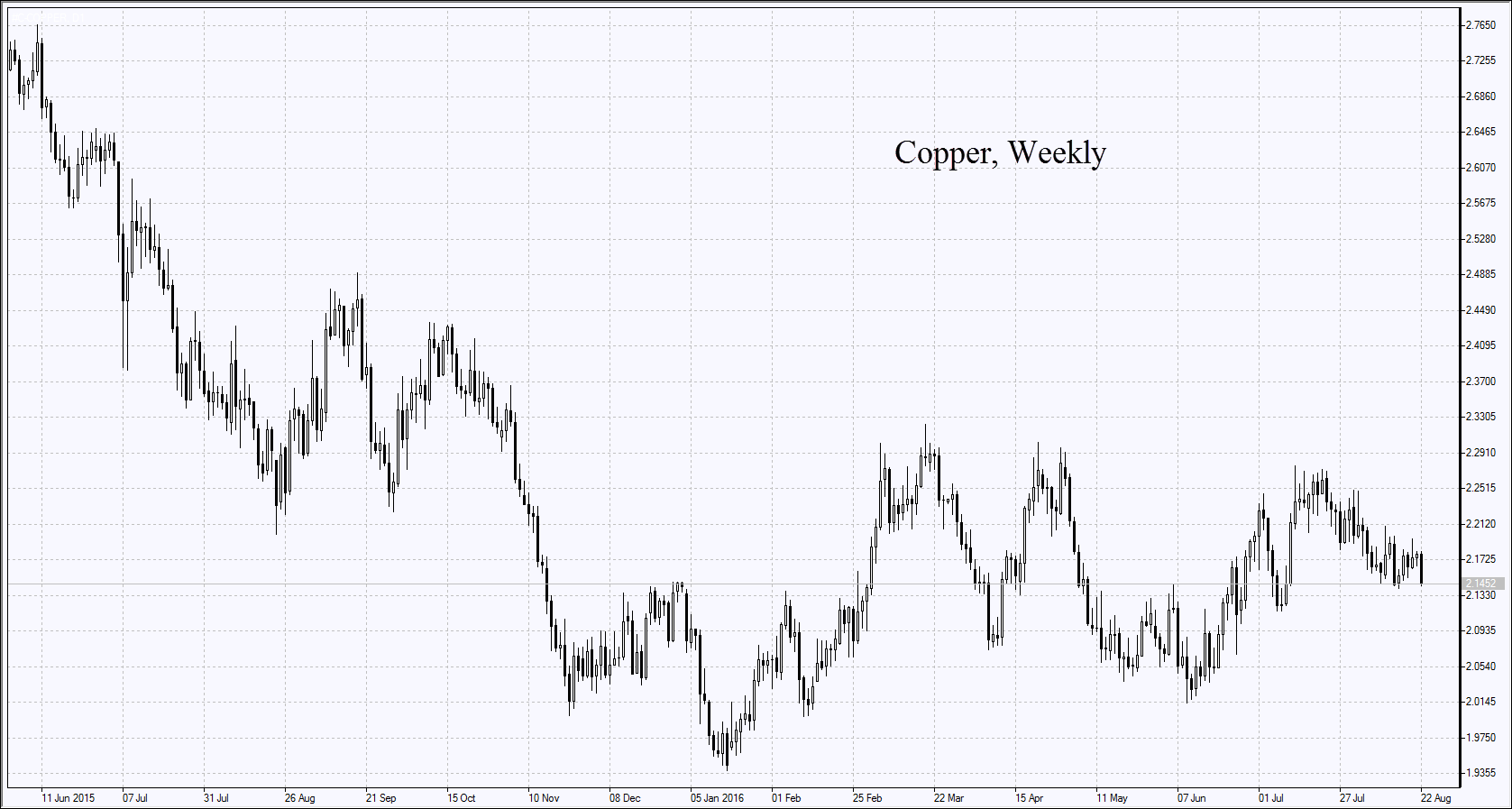 Copper fell on Monday after the report its exports from China rose this July to 75 thousand tonnes. This is almost 5 times more than in July 2015. The net long position in copper was formed last week while it was net short previously, according to CFTC.