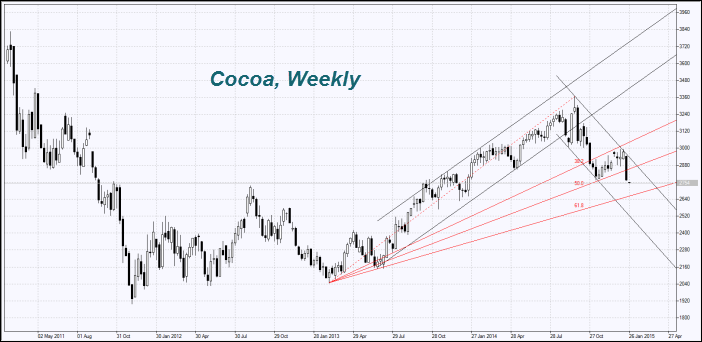 Cacao slumped last week; in the meantime International Cocoa Organization reviewed its forecast for global cacao reserves for the end of 2013/2014 season. Experts anticipate a 19-thousand ton deficit instead of a 53-thousand ton surplus. Cacao exports by Cote d’Ivoire from October, 1 to January, 25 (the current 2014/2015 season) declined from 1067 million tons to 1045 million tons compared to the same period of the previous season.