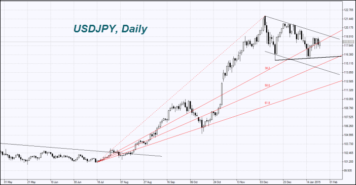 Nikkei opened with a negative gap on Monday and has been expanding all day long, driven by December positive data on foreign trade in Japan. Our analysts suppose that a more active increase of Nikkei is hampered by a mid-term yen strengthening trend. As seen from our previous overviews, a strong yen also encouraged the surge of the Australian dollar last week. The Japanese macroeconomic data are expected on Wednesday night.