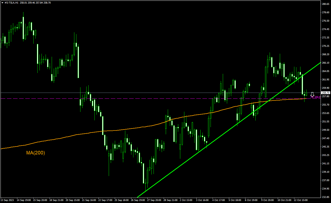 The medium term Tesla stock price forecast is bearish. The TSLA stock price is retracing up after breaching below a support line. Most likely the price will reverse and continue falling to test the 200-period moving average MA(200) under support while there is a likelihood it may continue rising and return above support.