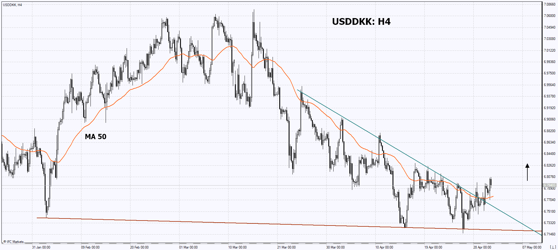 USDDKK moved up from the "Double Bottom & Breakout" technical chart pattern. The current forecast is bullish